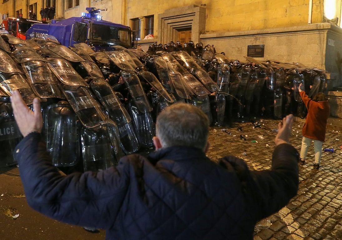 После принятого грузинским парламентом в первом чтении законопроект "О прозрачности иностранного влияния" (об иностранных агентах), тысячи грузин вышли на масштабные протесты в столице Тбилиси. Протестующие кричали "путин х*йло", "русский военный корабль" и т.д. Чтобы разогнать демонстрантов, полиция применила слезоточивый газ и водометы. Грузины в ответ анонсировали дальнейшие масштабные митинги.